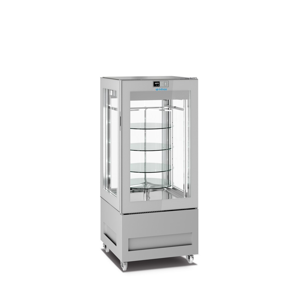 Height adjustable glass shelves measuring 510x450mm, 650mm long models and 710x450mm long models 850mm, 3 levels in model (S) and 5 levels in model (L). Model LO6215S with 4 revolving glass shelves and Model LO6215L with 6 revolving glass shelves, shelf diameter 460mm.