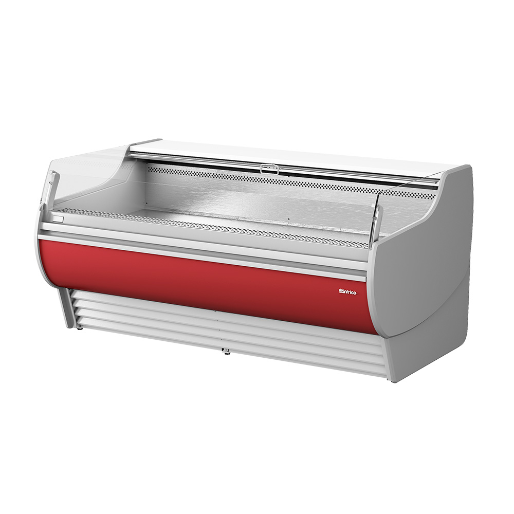 In its wide range of products you can find models with curved or straight front glass, all of them with front glass structure. You can also incorporate angles and neutral modules non-cooling. There are a wide range of options and accessories. Its exhibition area of 770 mm and its intermediate shelf help expose the product highlighting its quality.